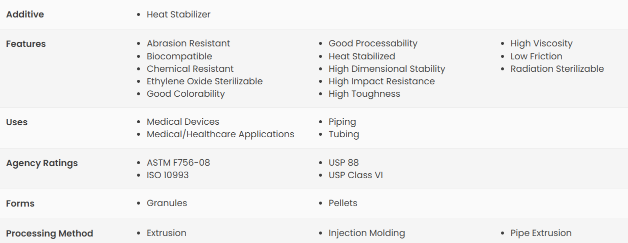 VESTAMID® Care ML grades were tested on boicompatibility for applications within the body of up to 30 days contact time and comply with USP class VI and ISO 10993 standards.